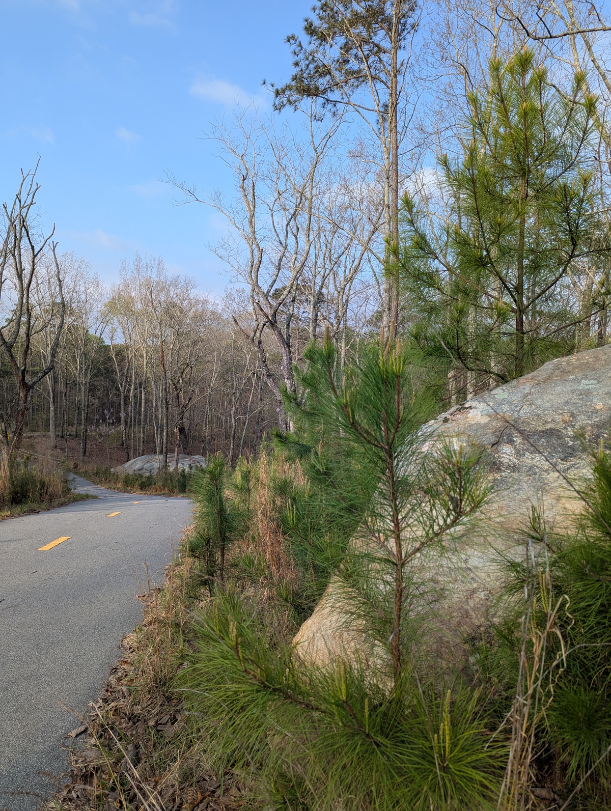This part of the park contains a very different terrain than what you see in the rest of the park. The trail is so-named for the boulders and barren rocky spots you’ll pass along the way.