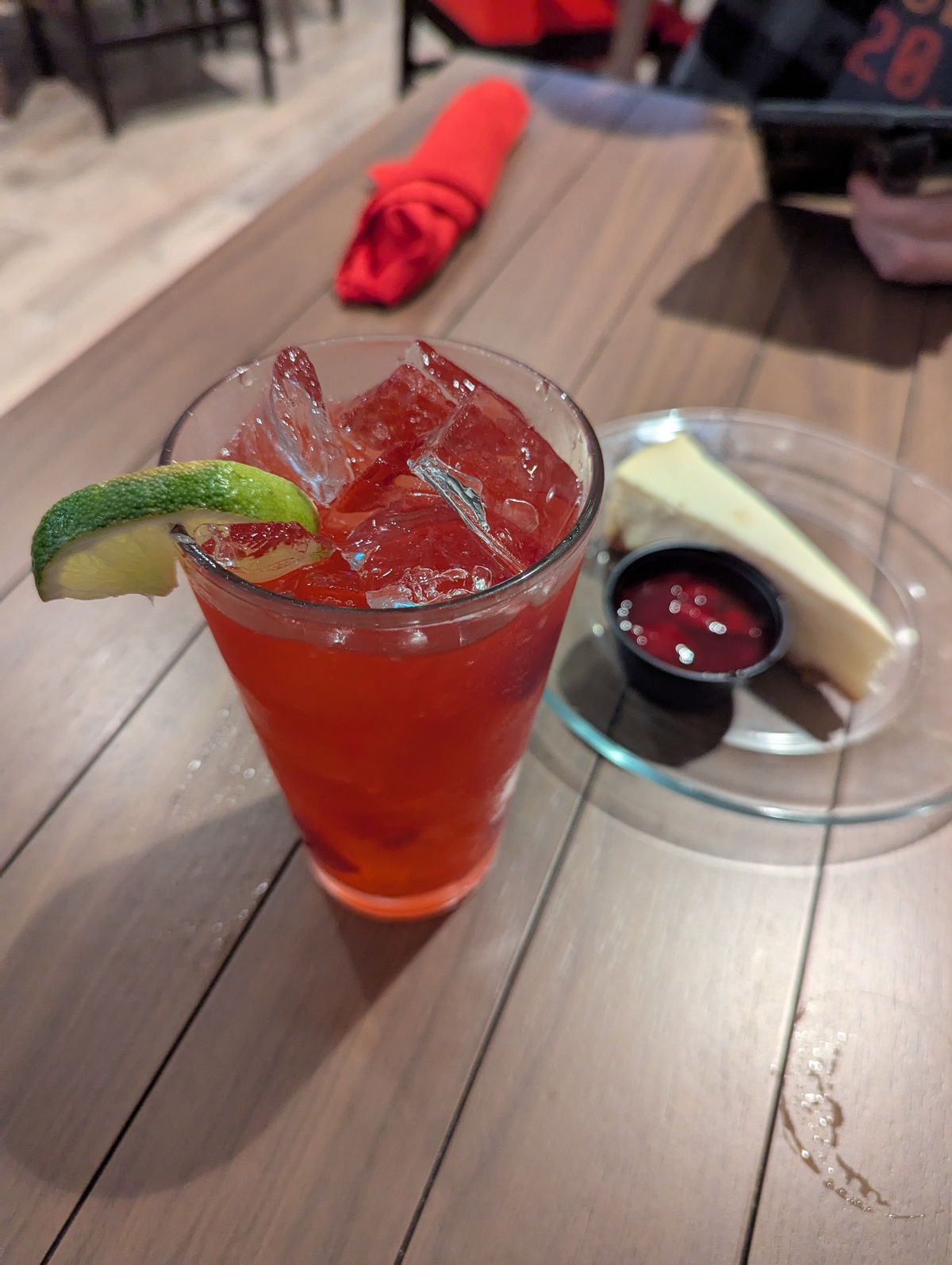 We stopped in for drinks and dessert while staying at the hotel. I recommend the Strawberry Daiquiri with a slice of Cheesecake with strawberry topping.