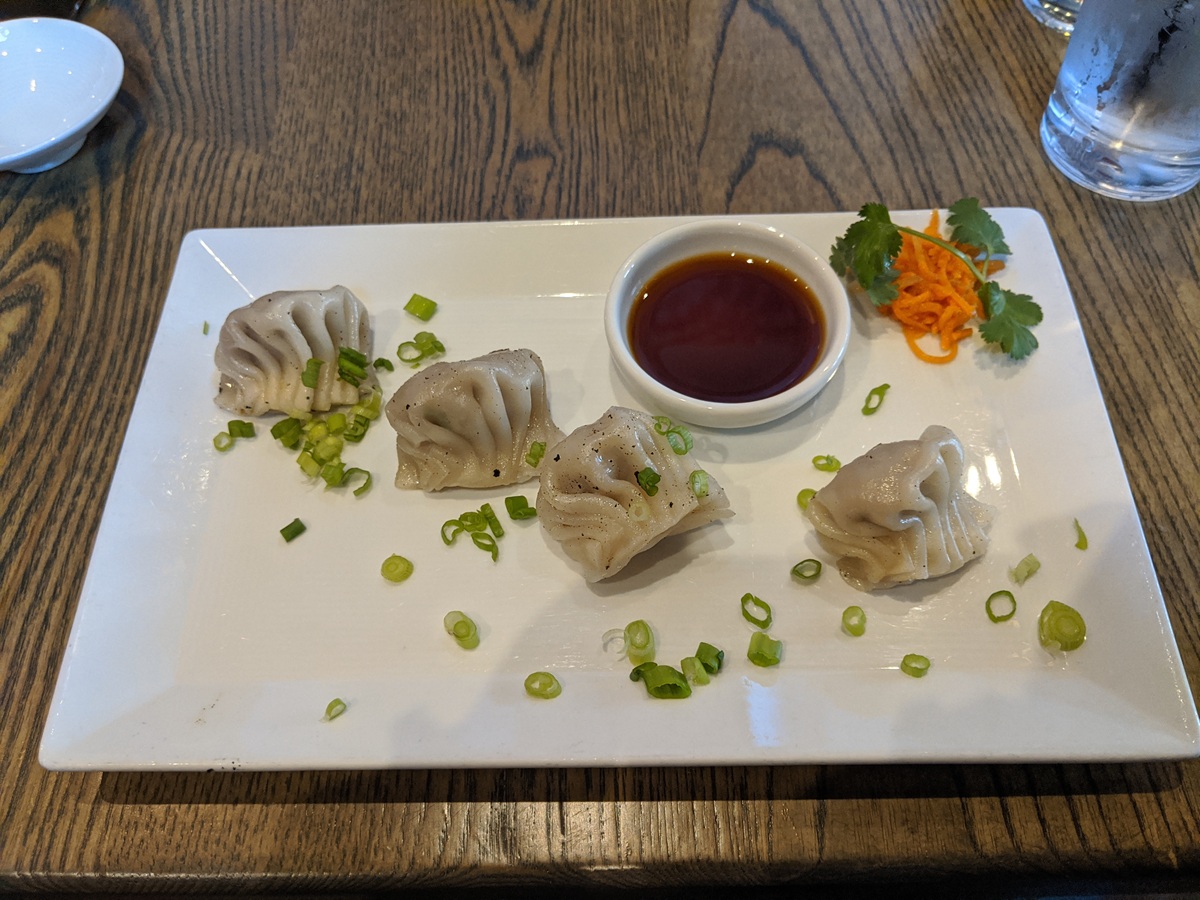 I recommend the Pork Gyoza, the Salmon Tempura, and the Snow Beauty Roll.