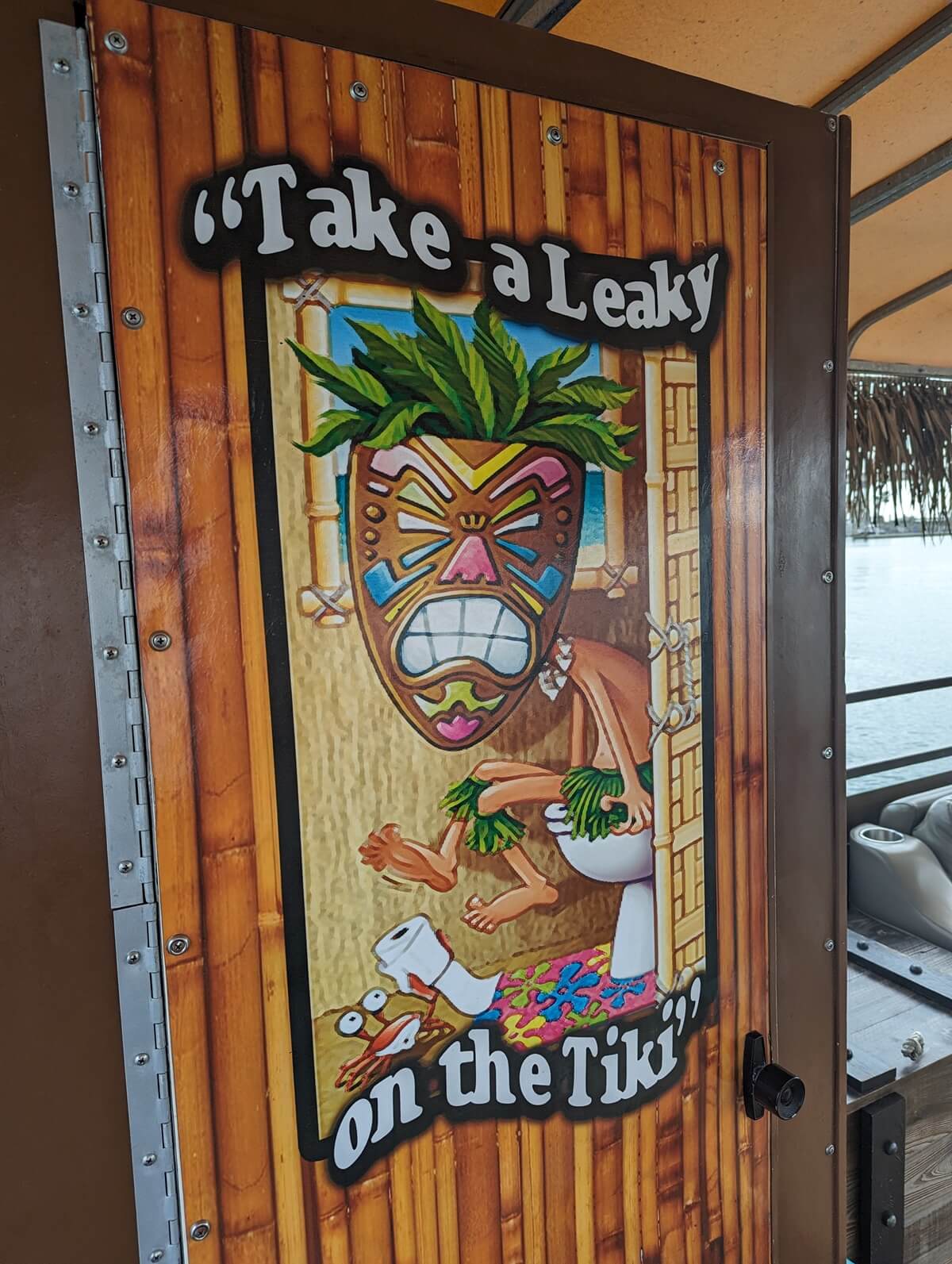 Come aboard the spacious pontoon boat, equipped with 2 double hammocks, a tiki bar, shaded seating, deck games, Bluetooth audio, and a bathroom onboard (you’re not going to find another tiki boat with a bathroom onboard).