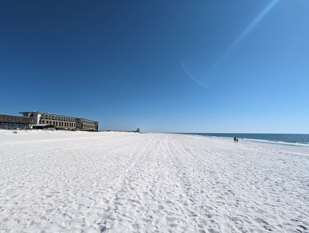 And Alabama’s Gulf Coast is known for its white sand beaches. The sand here is blindingly white and so soft underfoot that it squeaks when you walk on it. The sand is made from crushed quarts that washed down form the Appalachian Mountains millions of years ago.