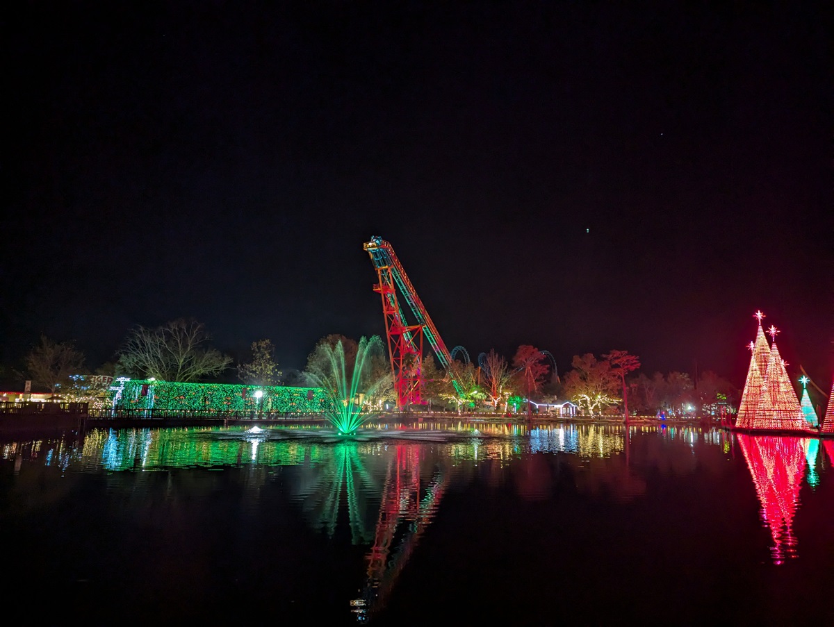 They decorate the park with over 2 million lights. You can walk through light displays, see the Christmas Tree Lighting Ceremony each night, watch the synchronized light show set to music, and meet-and-greet with Santa and other holiday characters.